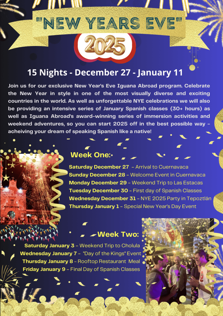 Special Edition Iguana Abroad New Year's Eve course: December 27 - january 11