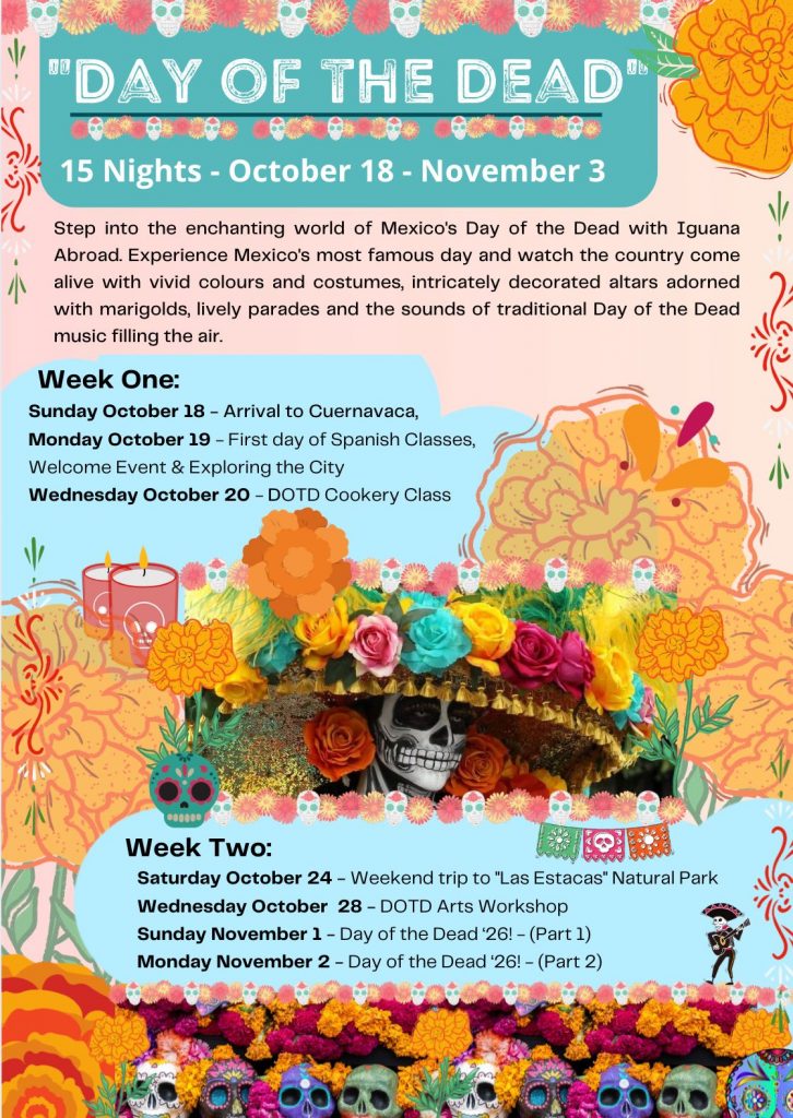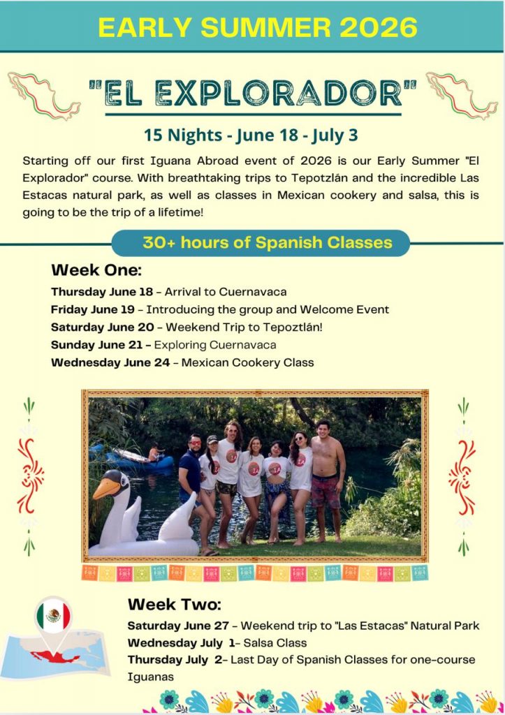 Want to find out the costs of our award winning Spanish courses in Mexico and upcoming course start dates? Check out the 2026 course schedules below for detailed day-by-day course outlines for our Iguana Abroad group courses, as well as the costs and pricing for each one.