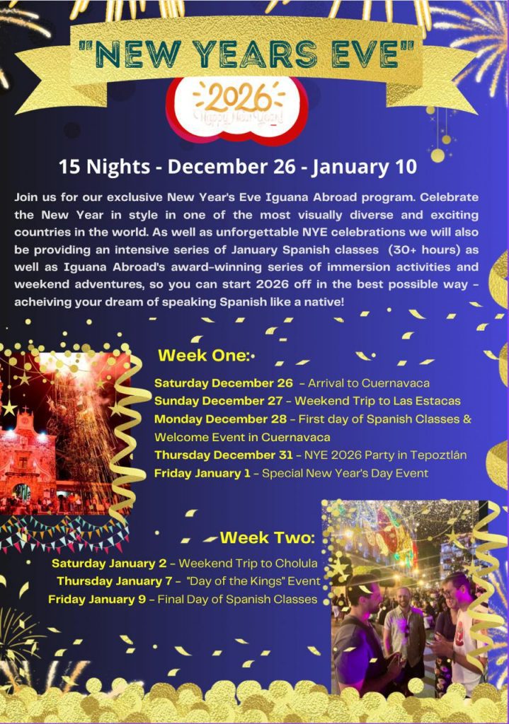 Special Edition Iguana Abroad New Year's Eve course: December 26 - January 10